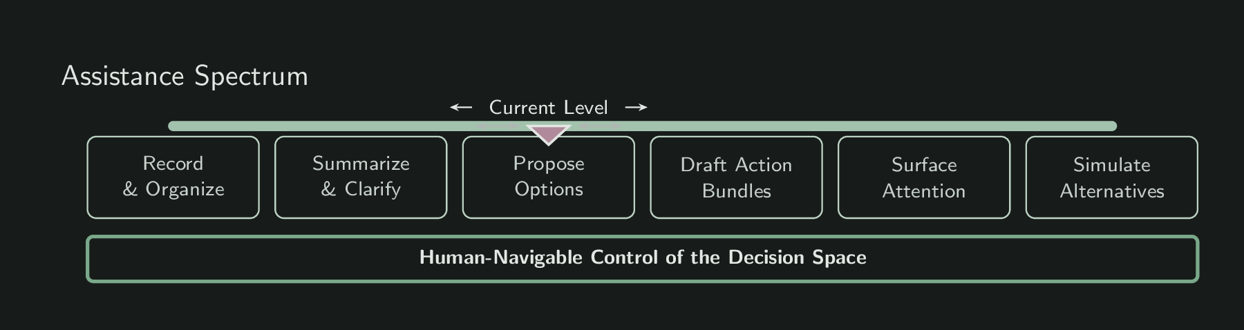 By combining structured exploration, reversible decisions, and adjustable proposal intensity, it enables humans to operate coherently across long-horizon work — without losing clarity or control.